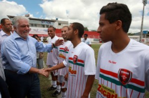 A população de Teixeira de Freitas, a 900 quilômetros de Salvador, no Extremo Sul da Bahia, recebeu nesta segunda-feira (21) ações importantes nas áreas de habitação e esporte, entregues pelo governador Jaques Wagner. São 500 famílias que passam a ter a casa própria, com a inauguração do Conjunto Habitacional Castelinho 1, como parte do programa Minha Casa, Minha Vida. Também foi inaugurado o estádio municipal Roberto Pereira de Almeida (Robertão), construído em parceria com o Governo do Estado.