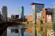 O hotel, com 134 apartamentos, localiza-se em um singular edifício de 17 andares chamado “The Colorium”, que é recoberto por mais de mil painéis de vidros coloridos, sendo uma das jóias arquitetônicas da cidade. Desenhado pelo prestigioso arquiteto britânico William Also, este arranha-céu está situado em uma das regiões mais modernas e chamativas de Dusseldorf, conhecida como a cidade da moda na Alemanha. Mais precisamente no bairro de MedienHafen, antigo porto industrial, que hoje em dia abriga algumas das famosas obras arquitetônicas de Gehry.