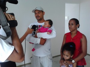 Orgulhoso, André exibia as chaves do imóvel, ao lado da esposa Emanuela Silva Santos, de 28 anos, e das filhas Evelyn, de 5 anos, e Kelly, um bebezinho de três meses.