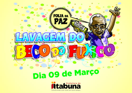 Hoje tem Lavagem do Beco do Fuxico em Itabuna. Começa ao meio dia com o tombamento do ABC da Noite, prossegue as 16 horas com o desfile de blocos e a lavagem do beco e depois, na Praça Adami, tem show com Armandinho e o trio Dodô e Osmar.