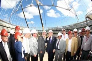 A construção da Arena Fonte Nova e outras intervenções urbanas relacionadas aos jogos internacionais, que serão realizados na Bahia – principalmente os das copas do Mundo da Fifa 2014 e das Confederações (em 2013) -, estão criando oportunidades de emprego e renda para muitas famílias baianas. O presidente da Confederação Brasileira de Futebol (CBF) e do Comitê Organizador Local (COL), José Maria Marin, em companhia do governador Jaques Wagner, vistoriou, nesta terça-feira (16), as obras da arena e do entorno, onde estão atuando parte destes trabalhadores.