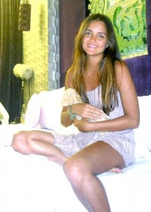 A garota está em Bali, na Indonésia, participando de gravações do programa, enquanto espera visto para entrar na Austrália – pelo regulamento do leilão, ela terá que voar de lá para os Estados Unidos.