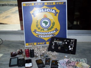 Com eles foram encontrados um revólver Taurus, calibre 38, com três munições intactas, e duas granadas de fabricação caseira, e recuperados celulares, GPS, jóias, e R$ 265,00. Os três foram presos em flagrante e comemoraram o aniversário na cadeia.