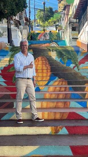 O Dr. Antônio Cafezeiro, diretor do Controle Laborário, afirma que “dar o seu melhor pelos outros é mostrar que eles podem sempre contar com você e com seu abraço acolhedor. Baseado nesta idéia e reafirmando o conceito de empresa cidadã, apoiamos a iniciativa de decorar as escadas da Ladeira da Gameleira, com um grafite em homenagem ao cacau”. “O sucesso que temos alcançado com nossos usuários nos inspira e Ilhéus cada vez mais nos encanta, por ser uma cidade acolhedora, com uma natureza exuberante e um riquíssimo patrimônio artístico-arquitetônico que fascina pessoas de todo o mundo”, destaca.