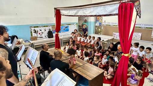 Entre 22 e 26 de setembro, em Ilhéus, e 6 e 10 de outubro, em Itabuna, o espetáculo “A Aventura de Mariá e Mureci” percorreu 11 creches municipais, somando cerca de 40 apresentações repletas de cores, sons, imaginação e descobertas. A iniciativa integra os Editais da Política Nacional Aldir Blanc Bahia, com apoio financeiro do Governo do Estado da Bahia, por meio da Secretaria de Cultura, e recursos da PNAB/Ministério da Cultura – Governo Federal.