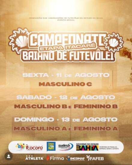 A Federação das Associações de Futevôlei do Estado da Bahia, em parceria com a Prefeitura de Itacaré, está trazendo um evento incrível para os amantes do esporte! A Etapa do Circuito Baiano de Futevôlei acontecerá neste final de semana, na Praia da Coroinha, com a participação de mais de 200 atletas disputando uma premiação incrível.
