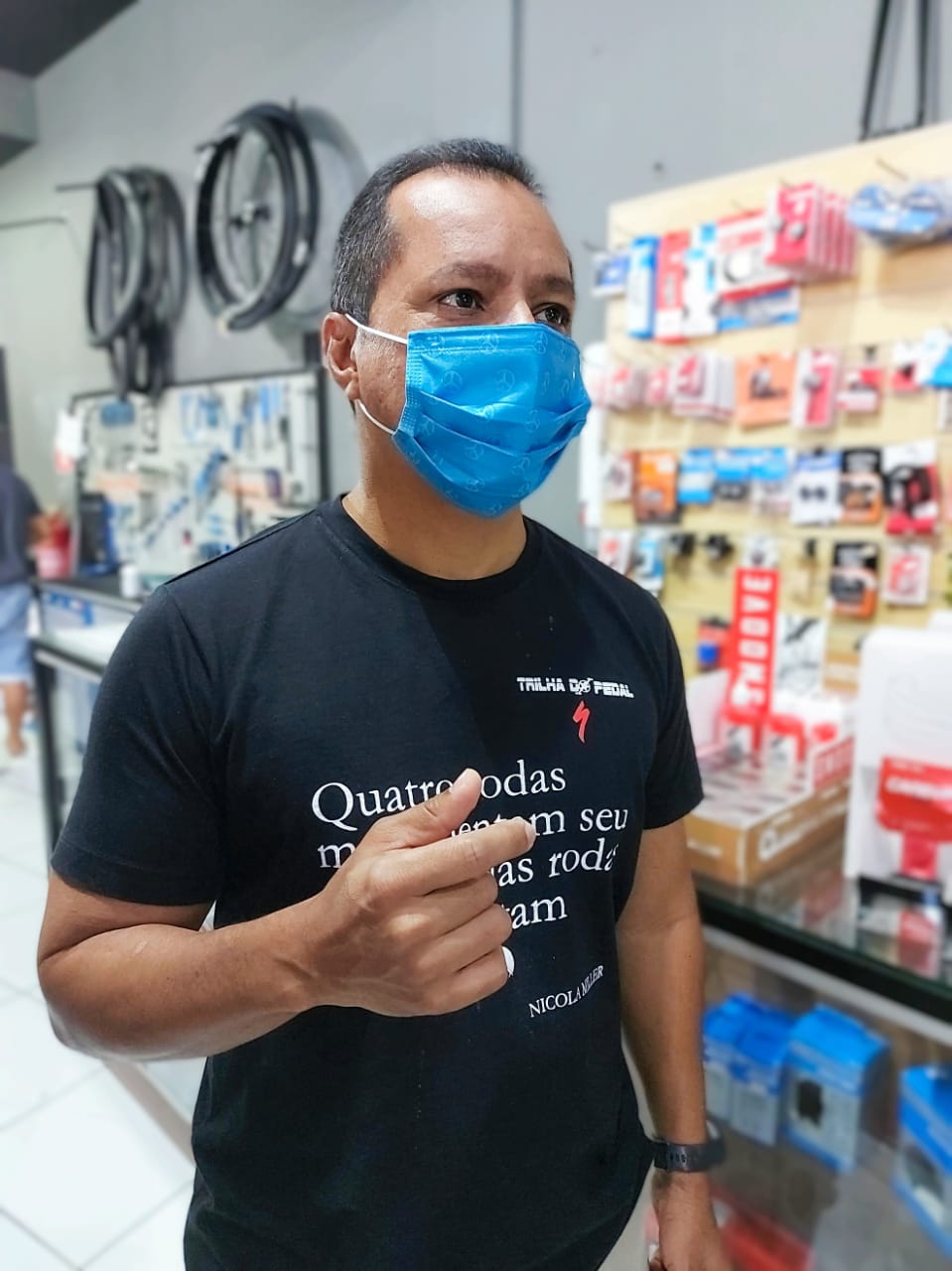 Narciso dos Santos trabalha no comércio de equipamentos e acessórios para o ciclismo e vê boas perspectivas para o futuro do seu empreendimento após a requalificação da avenida. “Acredito que influenciará positivamente no meu comércio, principalmente por ter uma ciclovia”.