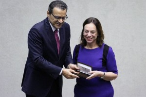 A jornalista Sonia Carneiro, representante do Governo da Bahia, em Brasília, foi condecorada hoje com a medalha Assembléia Nacional Constituinte, pela cobertura dos trabalhos realizados durante os 20 meses de elaboração da Carta de 1988. No total, 20 jornalistas fizeram parte da relação de agraciados, entre eles, Cristiana Lobo, Ricardo Noblat, Tereza Cruvinel, Raimundo Costa, Rubem Azevedo Lima, Luiz Gutemberg. Na ocasião, os chefes dos Três Poderes, e os constituintes receberam a medalha.