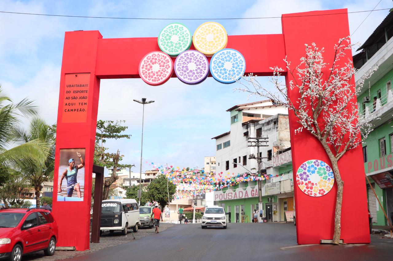 Prefeitura de Ubaitaba ornamenta cidade com tema de Junino e homenageia Isaquias Queiroz no Arraiá Olímpico.