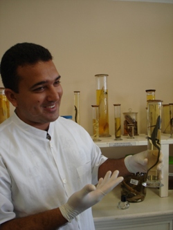 Do cacau são obtidas as cascas e do malte, o bagaço. Elizama explica como funciona o processo de transformação. “A hidrólise consiste em submeter os resíduos a uma primeira etapa com solução ácida fraca e calor, para, posteriormente, aplicar soluções enzimáticas. As melhores condições destas etapas foram investigadas de forma a se obter maiores concentrações de açúcares fermentescíveis”, disse. Segundo ela, os resultados obtidos são promissores, pois permitiram a redução de cerca de 50% da massa de resíduos e com a continuidade dos estudos será possível otimizar a hidrólise e a fermentação.