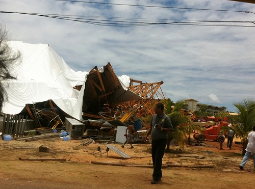 A obra, que montaria um espaço para receber até 3.000 pessoas, era realizada pelo Grupo TV1, que afirma ter 27 anos de experiência.