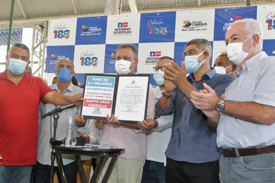 O governador Rui Costa visitou o município de Santa Cruz Cabrália, na Costa do Descobrimento, nesta quinta-feira (21), onde entregou equipamentos para o Hospital Professor José Maria de Magalhães Neto, incluindo kit Sala de Estabilização, e o trecho de 50 quilômetros recuperados da BA-001, que liga Cabrália a Belmonte. O governador reafirmou a construção de um novo aeroporto com maior capacidade, com licitação prevista para este segundo semestre de 2021.