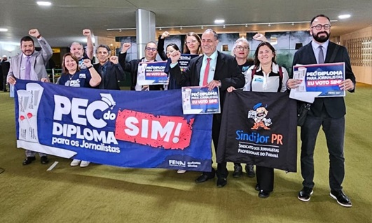 A Federação Nacional dos Jornalistas (Fenaj) realiza esta semana, de 7 a 11 de abril, o 4º Ocupa Brasília. A atividade, que tem a participação de representações dos sindicatos filiados, tem uma agenda com autoridades dos três poderes para tratar de cinco pautas da categoria: PEC do Diploma, Pejotização, Violência contra Jornalistas, Taxação das Big Techs e Piso Salarial Nacional.
