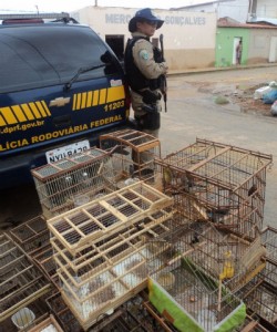 Equipes formadas por Policiais Rodoviários Federais e agentes do IBAMA percorreram a zona urbana do município de Itaguaçu/BA apurando diversas denúncias sobre a criação ilegal e o tráfico de animais silvestres.