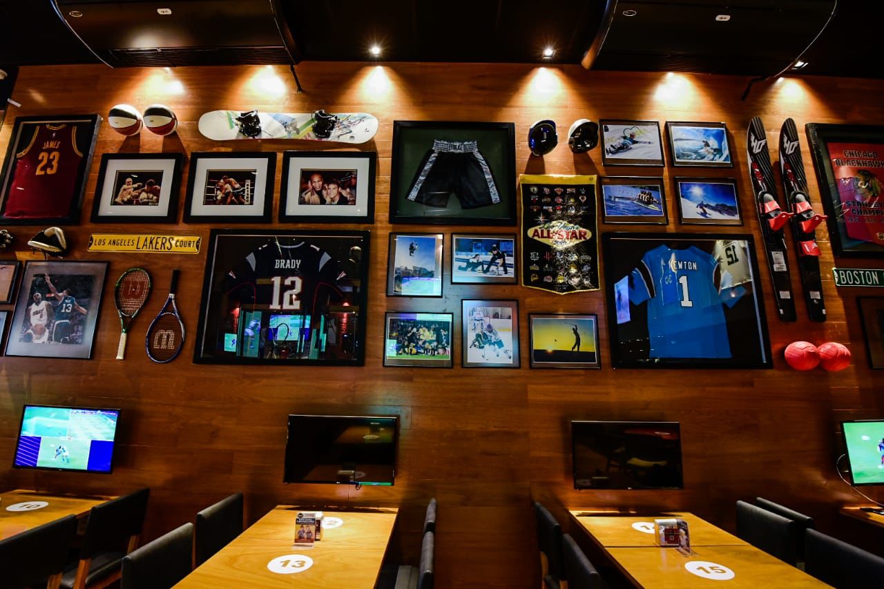 Com comidas e bebidas diversificadas, o cardápio apresenta opções de almoço executivo e para famílias [pratos para compartilhar], que levam nomes de atletas, como uma homenagem aos desportistas, petiscos, drinks e a famosa caneca congelada. Hambúrgueres, sobremesas e menu kids também fazem parte da gastronomia da casa.