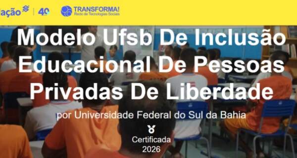 A Universidade Federal do Sul da Bahia (UFSB) foi certificada pela Fundação Banco do Brasil como uma das iniciativas destacadas de Tecnologia Social em 2026, em reconhecimento ao modelo institucional de inclusão educacional voltado a pessoas privadas de liberdade. A certificação destaca a política desenvolvida pela universidade que articula reserva de vagas, processos administrativos adaptados e estratégias pedagógicas específicas para garantir o acesso e a permanência de estudantes em privação de liberdade no ensino superior.