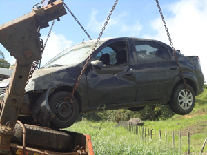 Com isso, aumentam os riscos de acidentes, como o que ocorreu na manhã de hoje, nas proximidades do acesso a Barro Preto. Felizmente, o motorista teve apenas ferimentos leves.