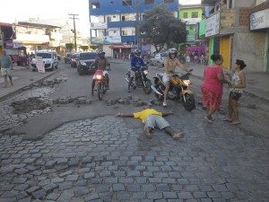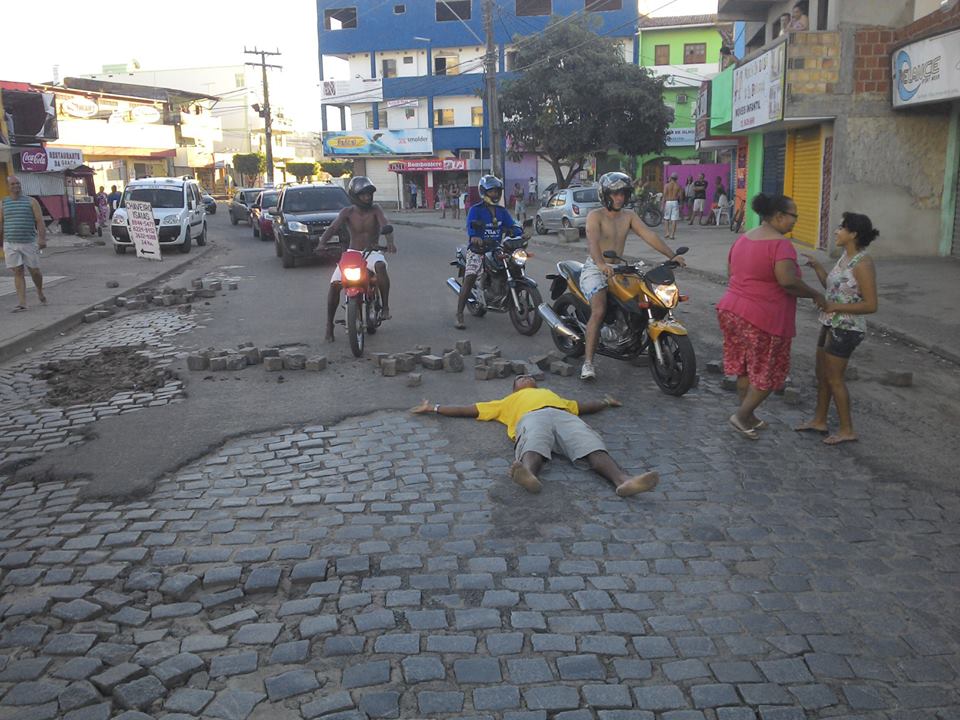 No bairro Nelson Costa, o morador anônimo simplesmente se deitou no meio da rua e parou o transito, em protesto por melhorias..