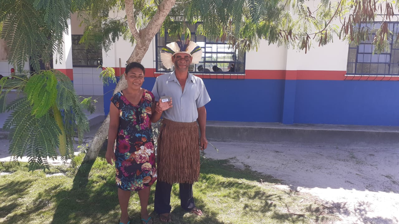 O vice-cacique Natan Neves, da etnia Pataxó, residente na Aldeia Tawá, localizada em Prado, já pegou o cartão de sua família, juntamente com a esposa, Luciene dos Santos, no Colégio Estadual Indígena Tawá. Ele falou sobre a importância do programa. “Sou pai de oito filhos e é muito bom, neste momento de pandemia difícil para todos nós, receber mais este benefício. Para nós, esta iniciativa é de grande valor, pois temos certeza de que não vai faltar o pão na mesa dos nossos filhos”, afirmou. Lucilene também ficou feliz com o Bolsa Presença. “Agradeço muito ao Governo do Estado por este auxílio, pois vamos poder comprar alimentos para os nossos filhos”, disse.