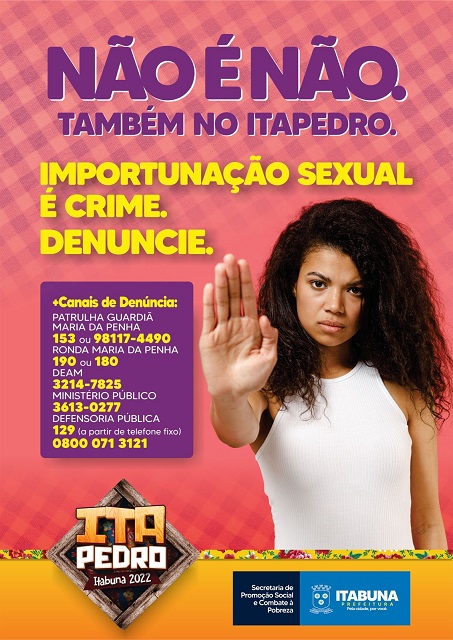 Diante da importância e magnitude do evento, a(SEMPS) realizará a campanha: “Não é Não também no Ita Pedro” que tem como princípio orientar e coibir a prática de importunação sexual.