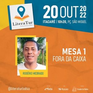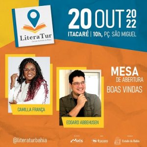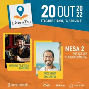 Nomes como Rogério Medrado, Matheus Peleteiro da Rocha, Amós Heber dos Santos, Rodrigo França, Val Benvindo, Gabriel Nascimento, Ludmila Singa, Roger Ferreira, Rick Trindade, Satta e a Chef Manu Nascimento estarão em Itacaré de 20 a 22 de outubro na 2ª edição do Circuito Literário da Bahia, o Literatur. Nestes dias estão programadas mesas como Por Que Ler Contemporâneos?, Fora Da Caixa, Pautando a Ancestralidade na Contemporaneidade, Narrativas de Vivências Diárias e Viagens para Além Daquelas que os Livros Proporcionam. Assim como na primeira edição, toda a programação será gratuita.