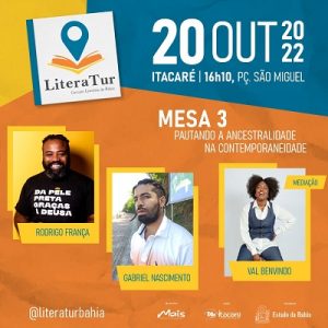 A mesa também se propõe a trazer para o centro do debate o cenário literário baiano, com as influências e vivências de cada um. Rodrigo França acumula diversas produções, incluindo a mais recente, de 2022 – seu longa metragem “Barba, cabelo e bigode”, estreado na Netflix. Ele é o primeiro diretor negro do streaming no Brasil, com conteúdo original.