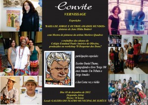 Será aberta às 18 horas desta segunda-feira (3), na galeria do Teatro Municipal de Ilhéus (TMI), a exposição “Bahia de Jorge e outros Amados Mundos”, da artista plástica Jane Hilda Badaró. O trabalho conta com a participação especial da artista plástica Marlove Quadros e de vinte alunos do Colégio Estadual Paulo Américo de Oliveira.