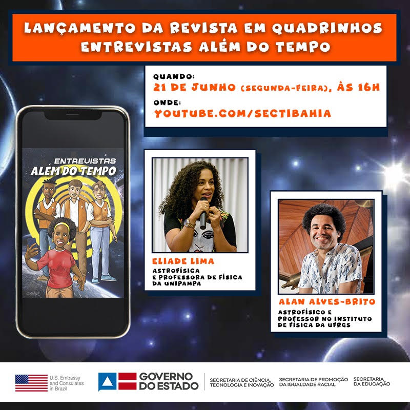 Como parte das celebrações do Mês da História Negra nos Estados Unidos, as secretarias de Ciência, Tecnologia e Inovação (Secti), Educação (Sec) e Promoção da Igualdade (Sepromi) lançam a revista em quadrinhos “Entrevistas além do tempo”, no dia 21 de junho, com transmissão pelo canal da Secti Bahia no Youtube, a partir das 16h. A HQ, voltada para estudantes baianos, principalmente os de escolas públicas, foca na popularização da ciência e busca prevenir o racismo estrutural, que dificulta o acesso de jovens negros às carreiras científicas.
