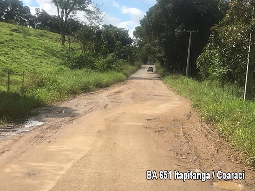 A restauração de 26,8 km da BA-651 facilitará a ligação de Itapitanga com os municípios do Litoral Sul baiano. O aviso de licitação para a requalificação da rodovia entre Itapitanga e Coaraci saiu no Diário Oficial do Estado (D.O.E.) desta quinta-feira (17). A obra realizada pela Secretaria de Infraestrutura da Bahia (Seinfra) também beneficiará o escoamento da produção do cacau e da pecuária e o desenvolvimento do turismo na região.